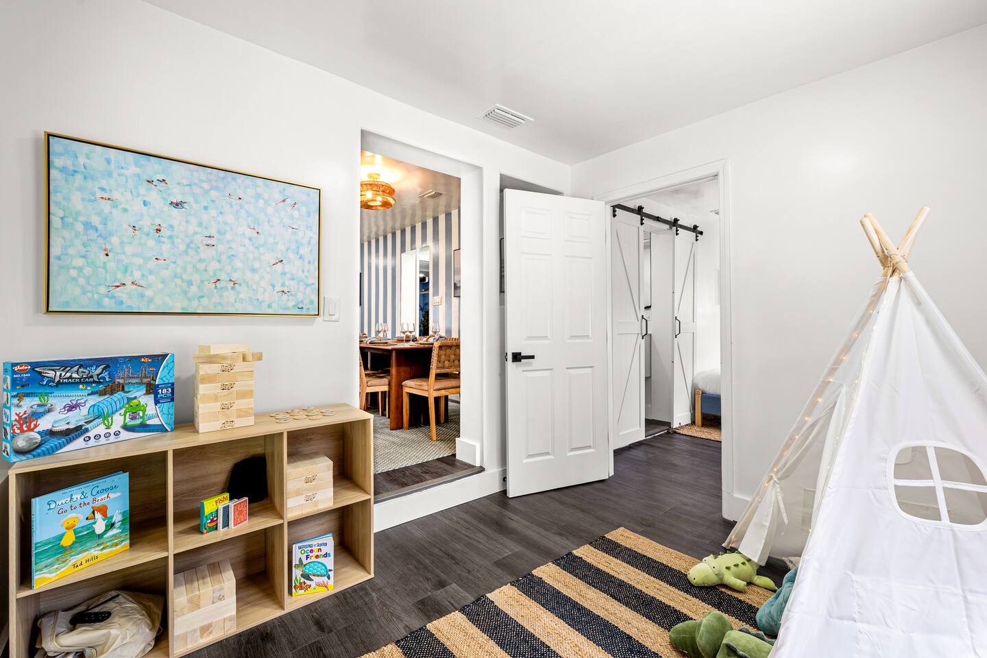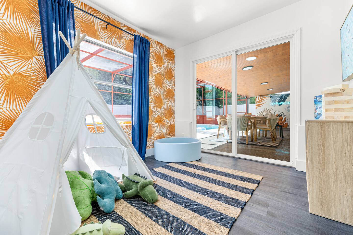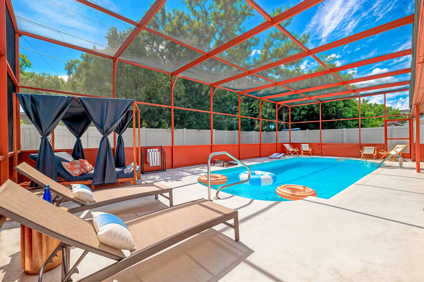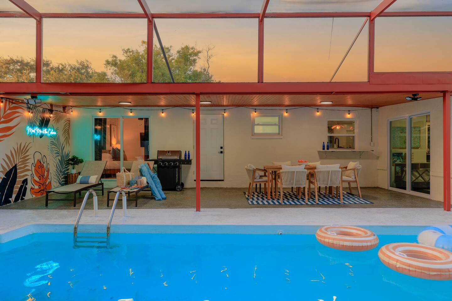 🏠 Property Highlights 🏠 *4 Bedrooms — 2 king, 1 queen + 2 bunk beds *3 Bathrooms — Modern fixtures, stocked with essentials *Fully Equipped Kitchen — Modern appliances, coffee bar, cookware essentials *Open-concept Living Room — Oversized sectional, 55” Smart TV *Epic Game Room — Foosball and air hockey table, TV, and comfortable seating *Indoor & Outdoor Dining Area — Perfect for family meals or game nights 🌴 Outdoor Highlights 🌴 *Private Pool — Sparkling blue water with cabanas and lounge chairs *Spacious Backyard — Fully fenced for privacy & outdoor fun *Outdoor Grill & Dining — Perfect for BBQ nights under the stars *Mini Putt-Putt — Fun for all ages ⛳ *Cabanas + Loungers — Relax, tan, and unwind in style *Fully Fenced Yard — Ideal for families & extra privacy 🧸 Family-Friendly Features 🧸 *Playroom — Ball pit, toys, games, and tent *Cornhole *Giant Connect 4 *Beach wagon, umbrellas, and toys *Jenga *Firepit with cozy string lights 📍 Unbeatable Location 🏖️ 10 min → Indian Rocks Beach 🌆 15 min → Clearwater Beach 🏪 5 min → Shopping, groceries & restaurants ✈️ 30 min → Tampa International Airport ⚾ Close to parks, golf courses, and top attractions 🌟 Included Amenities 🚗 Free on-site parking 🖥️ High-speed Wi-Fi 🧼 Washer & dryer 🧴 Hand & dish soap ☕ Coffee station + fully stocked kitchen 🌡️ Central A/C & heating 🔐 Keyless smart entry for smooth check-in ✨ Why Guests Love It Here *Designed for families, couples, and groups *Ideal for vacations, remote work, & extended stays *Resort-style amenities + unbeatable location *Thoughtfully curated for comfort, fun, and unforgettable memories 👉 Book your stay at Coral Stone Retreat and experience the perfect blend of luxury, leisure, and Florida sunshine. 🌞🌴
