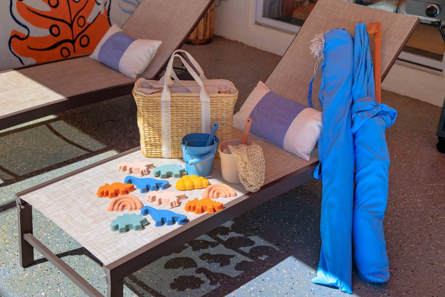 - Beach essentials Beach towels, umbrella, beach blanket, snorkeling gear